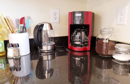 Kitchen is stocked with all the cooking ware, plus complimentary coffee, tea, sugar and creamer.