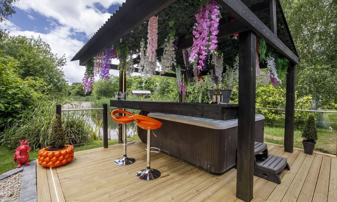 The stunning outside area offers a spacious decked area, overlooking the lake. With outdoor dining space for 4 and a luxury 4 seater hot tub.