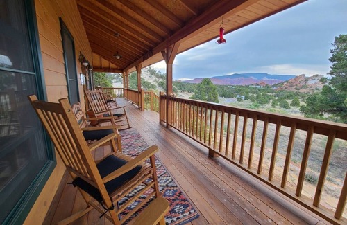 Set against a towering red-sandstone dome amongst a grove of pinion pines at 7,000 ft this expansive wooden cabin with a wraparound covered deck blends seamlessly into the desertscape. The home boasts 6 spacious & bright rooms with private baths, relaxing common area, and an industrial kitchen for hosting. Located minutes from Capitol Reef National Park, this is the perfect sanctuary to unwind and enjoy the desert skies after a day of exploring.