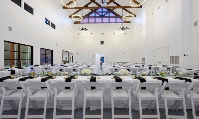 - Scenic Outdoor Setting: Enjoy a dreamy backdrop surrounded by 20 acres of lush trees and serene nature, perfect for saying "I do" in an enchanting atmosphere.