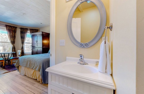 The entire property consists of separate retreats, each with a full kitchen and a separate entrance. The main duplex boasts a beautifully decorated, light-filled open floor plan that seamlessly combines all living spaces into one. Discover a welcoming living area adorned with unique paintings, vintage items, and numerous books. Prepare culinary masterpieces in the well-appointed kitchen, complete with all stainless steel appliances that will make cooking a breeze. On this level, you can also find one bedroom and a beautiful bathroom with a shower and a separate soaking tub. The upper level boasts a spacious bedroom with a working desk and an en suite bathroom with a clawfoot tub.