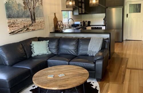 Luxurious, Full Murray River Frontage, 5 minutes from 'The Timbercutter', Fully equipped and renovated modern home, 4 Bedroom, 1 Bathroom with shower and relaxing Bathtub, and Ensuite, 2 Living areas, sleeps 9: containing 2x King, 1x Queen and a bunk bed with a double and single on top. Washing facilities. Undercover bbq area and fenced children's play area. Boat Pontoon to moor your boat, Plenty of parking. Pets Welcome (with permission) Located, Picnic Point- Mathoura NSW, seconds from the National Park bushwalking trails, with plenty of local Australian wildlife at your door step. The perfect spot to unwind, and take in the quiet serenity of life on the Murray