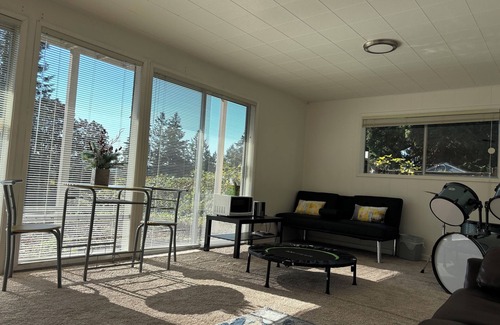 My house locates in the quiet education hill, just 100 meters away from the bus stop. 0.5 mile from Redmond Library,Redmond city hall and Redmond square. The suite is on the first floor of the single house with a beautiful front yard and parking lot. The well-lit living room, the spacious bedroom with one queen size and one full size beds and the bathroom are dedicated for you. I prepare clean towels, slippers and tablewares for your staying. Certainty bottle water, snack and fruit are served to welcome your arrival. It’ll be my great pleasure to host you in my house! I’ll be always on call for help!