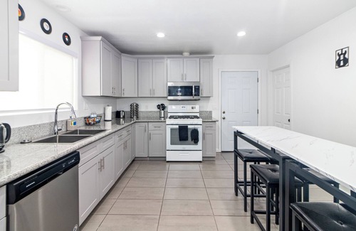 Welcome to our spacious and inviting home that will instantly captivate you and your ears! As you step inside, the open concept design creates a seamless flow, inviting you to explore and unwind. The living room beckons with fun music wall art, multiple seating areas, perfect for gathering and socializing. Settle in and enjoy your favorite shows on the Smart TV or unwind at the bar table while listening to a record and enjoying the bay window view. Our arcade corner has Pac-Man with multiple other games to play like a kid. The Wi-Fi will keep you connected to the digital world.