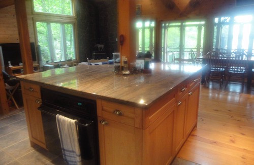 Relaxing in the living room you can enjoy natural sunlight all day long (southwest exposure) with panoramic views of the lake and pretty creek which runs parallel to the cottage. The living room is equipped with surround sound, satellite tv, flat screen 50" tv, free xplornet internet and plenty of movies for the kids plus some interesting furniture pieces, not to mention many magazines and games.