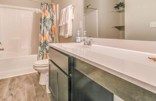 This home pairs privacy and convenience with two full bathrooms, each with a large single vanity and combination bathtub and shower. Fresh fluffy towels are ready for your arrival as well as complimentary bath products.