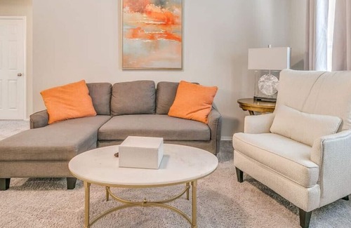 This private home is based in a quiet neighborhood with easy access to major highway, just a short drive from local attractions and great restaurants. The whole house is geared for longer stays with modern amenities that ensure a relaxing stay. With a workspace, a full kitchen, and a spacious backyard, the home is perfect for the whole family or business travel.