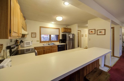 Comfy 2 bedroom 2 bath condo. Two level condo. Upstairs is bedroom #1 that has a queen bed with an in-suite full bath and bedroom #2 has two double beds with a in-suite full bath. Main floor has a full kitchen, laundry and 1/2 bath. The home boats an open concept living with an open dining / living room area complete with a beautiful fireplace.