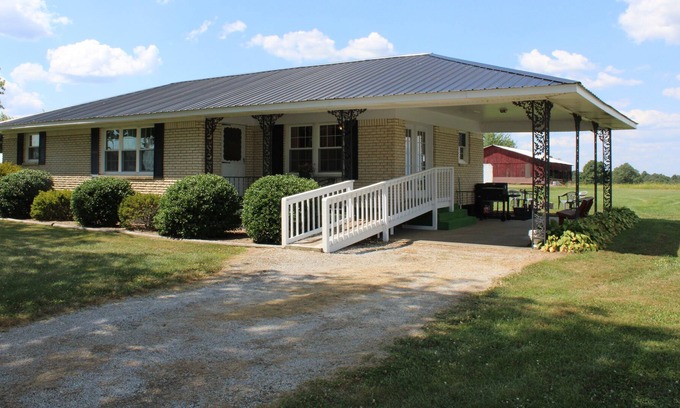 Adorable brick home, that is situated in a quiet, country setting. Surrounded by a beautiful farm atmosphere; one will enjoy the sounds and peace in this rural area. This home is about a 10 minute drive from downtown Leitchfield, 25 minutes to Nolin Lake or Rough River. Just an additional 10 minutes will have you at Mammoth Cave National Park. Although this home is suited for short-term guests we also offer "Extended Stays" for travelling medical personnel, home relocations, or military reassignments (Ft. Knox is not far away).