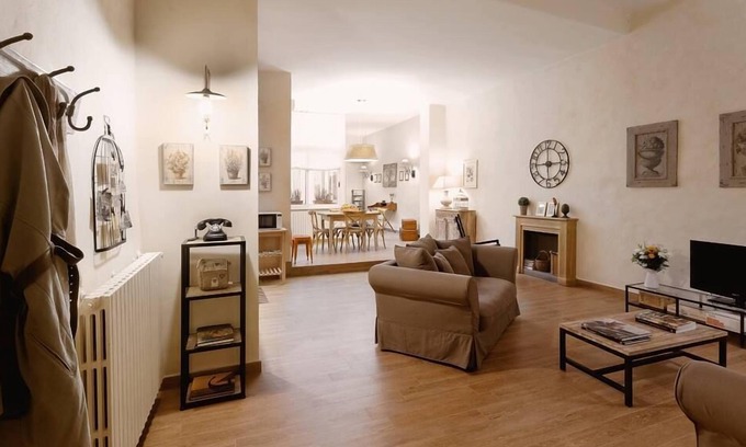 Our 94sqm apartment was recently and elegantly renewed, and it's located at the 1st floor of a XV Century's building. Peace and quiet are ensured, since there are no windows facing the streets: all windows face the wonderful internal patio, a green and peaceful oasis, ideal to relax in the evenings or have breakfast in the morning. Light dominates every room of the apartment, thanks to high ceilings and bright, wide windows. We worked really hard to give you a place where you can feel the cozy and warm embrace of a real home, starting from the wide open space where a fully stocked kitchen, a comfortable dining room and a cozy living room are combined in a perfect balance, in addition to a windowed bathroom. In a little studio-area between dining room and bedroom, you will find plenty of touristic informations, maps and directions, for you to use during your stay. The bedroom is separated from the open day-time space, to ensure you intimacy and privacy., adding a romantic and classy feel to it. This room can accommodate two adults and a child (in an extra bed). Also, the bedroom has its private windowed bathroom.
