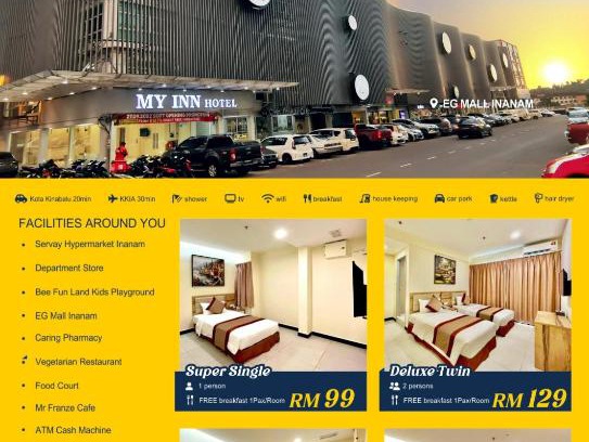Based on the information reported by the owner or manager, details for the cancellation policy for the My Inn Hotel Inanam are as follows: Cancellation policy Guests are cautioned that the cancellation policy may differ based on seasonality, availability, or current travel restrictions. Guests should also be aware that this policy may be subject to change and should be confirmed prior to booking. More details may be available on this page in the property description. However, early check-in or late check-out can sometimes be negotiated between the guest and the owner or the manager of this property.