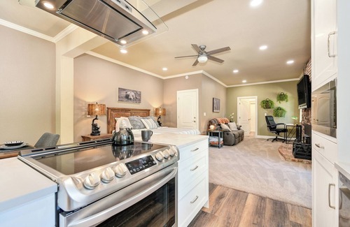 This studio is setup for two adults with the option of a queen air mattress for extra guests or children. It is a cozy space with plenty of room to roam outdoors.