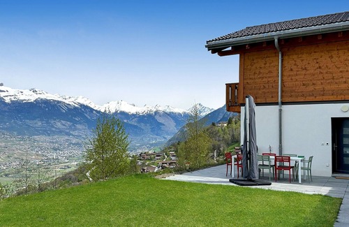 Set in lush greenery, it enjoys a panoramic view of the Rhône plain and the Bernese Alps.