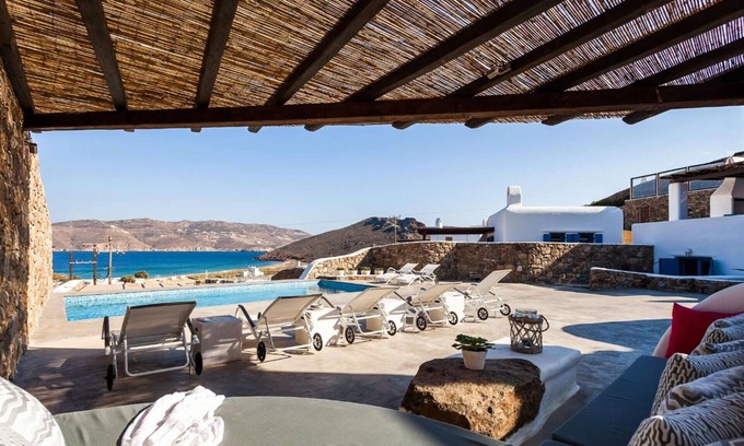 Best-rates for the Panormos villa starts from $1,066 per night with includes Pool, Internet, Private Pool, Ocean View, Oceanfront, Air Conditioner, Parking, TV, View, Balcony/Terrace, Wellness Facilities, Barbecue/Outdoor Cooking, Child Friendly, Designated Smoking Area, Fireplace/Heating, Kitchen, Laundry with all other amenities. Perfect for Weddings is committed to ensuring every guest experiences a comfortable and extraordinary stay, whether planning a romantic getaway, a honeymoon, a pet-friendly stay, or celebrating with the entire wedding party.