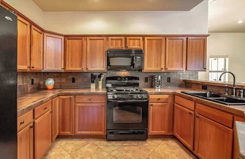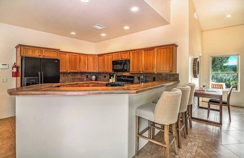 The home also includes a garage with a washer and dryer, making it convenient for longer stays. The expansive and private backyard is perfect for outdoor activities, offering both privacy and space to enjoy Sedona's natural beauty.