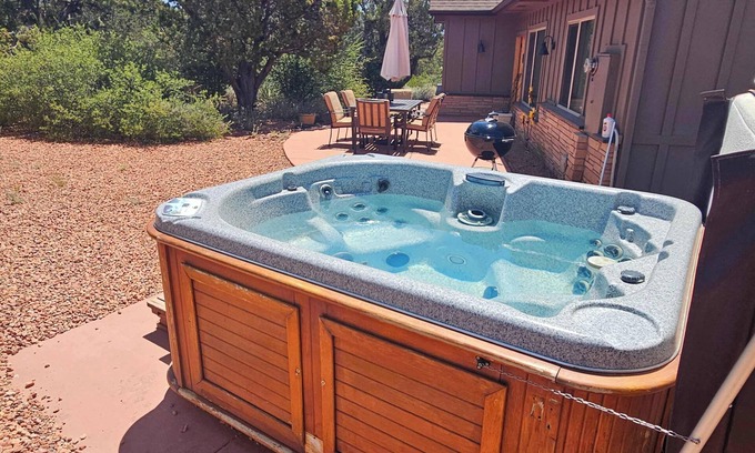 - Indulge in a private hot tub with spectacular red rock views and birdwatching