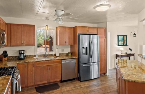 Myrinn – Unwind w/Red Rock Views & Trail Access has 2 Bedrooms , 2 Bathrooms, and max occupancy of 6 people. The minimum rental for this property is 1 nights, but this can change depending on the season you plan on staying. Previous guests have given good rated it, and VRBO labeled it a top-rated House because of the excellent services rendered by the owner or manager of this House, and has consistently provided great experiences for their guests. Most families or guests that use it recommend it to their friends and some of them are repeat guests. House has a friendly neighborhood, and the West Sedona has interesting places to visit. If you want to learn more about the House in West Sedona, such as places to visit and things to do nearby, you can check below to learn more.