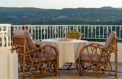 The villa is equipped with numerous additional amenities to ensure a comfortable stay. These include a hairdryer, iron and ironing board, Bluetooth loudspeaker, mosquito nets on all windows and doors, a high chair for children, central heating for winter stays, and a constant supply of hot water. The surrounding landscape, with its breathtaking mountain views, is perfect for those who enjoy photography, painting, or writing. You can bask in the warm Mediterranean sun, under the bright blue sky, while listening to the soothing chirping of cicadas in the garden. The panoramic views of the surrounding valleys, olive groves, vineyards, hills, nearby villages, sunsets and church steeples are simply mesmerizing, especially when viewed from the tall, western-facing windows of the villa.