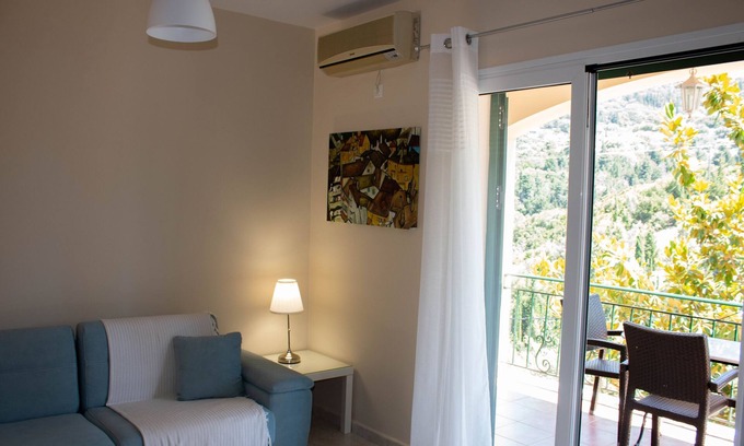 Erato Apartment Kefalonia is on the 1st floor and is a two room apartment of 45 square meters with all the comforts and decorated with taste and finesse offering discreet luxury for a pleasant stay. It features a bedroom with double bed, a sitting area with a sofa bed, a bathroom with a shower, fully equipped kitchenette and a private balcony. Staying in “Myrtos Cottages” is an excellent choice as you can enjoy the island’s hospitality in a frugal, calm and idyllic environment at the same time.
