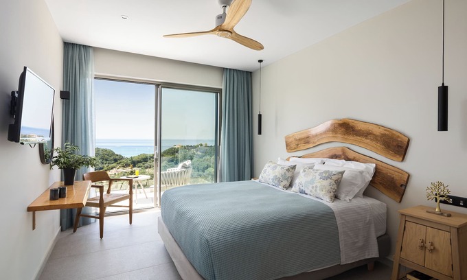 The bedroom has a double bed, a balcony with a sea view, a flat-screen satellite TV, a safe and internet access.