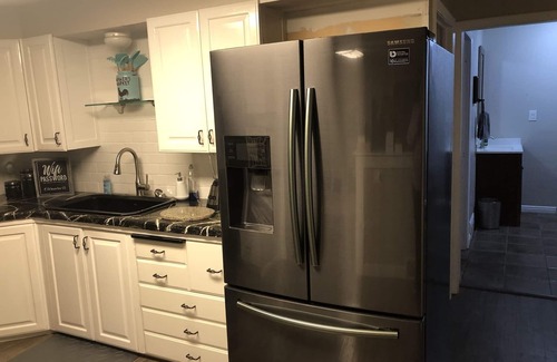 1880 sq. ft. Rambler home 3 bedroom upstairs and 1 bedrooms downstairs with 2 baths. Back yard with grass and shed with covered patio with fun lighting and a BBQ to use for outdoor cooking. There is a lot in the back of property with ample parking for ATV's or additional vehicles. Property is on a 1/3 of an acre. There are 4 bedrooms and 2 bathrooms. In the living room there is a sectional and game table for your enjoyment. The kitchen has bar seating and amble dinnerware including pots/pans, kitchen utensils, can opener, knives, blender, cutting board and coffee mugs (too much to mention). You can also use the game table as a dinner table for more seating. You will also find vacuum, a mop and brooms. Very clean, freshly painted and newly furnished. This property has extra parking for all ATV or recreational vehicles. Lots of room for parking. The home also has outdoor security monitoring/video recording that is on and actively used to protect the home.