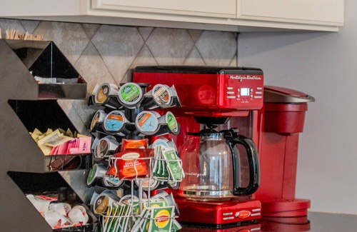We provide K-cup with creamer/sugar so you can enjoy a morning coffee.