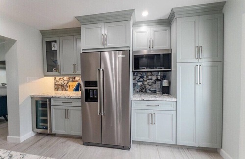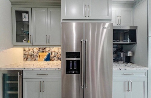 • Fully Equipped Kitchen: Spacious kitchen with ample room, fully stocked and featuring a Keurig coffee maker and wine cooler for your convenience.