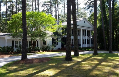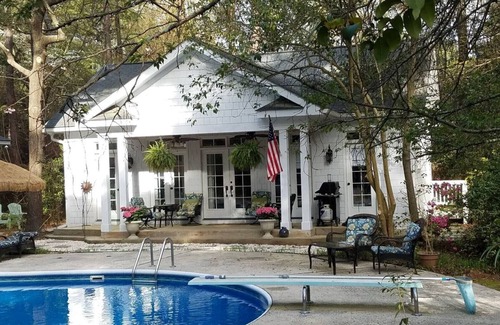 A warm cozy guest house with an open floor plan, High ceilings, and a wall of glass doors overlooking the pool and jungle like backyard of 3 acres. It has a large separate bath and complete kitchen. It was a perfect place for a completely secluded getaway ... less than 2.5 miles from the center of both Southern Pines and the Village of Pinehurst... 8 minutes from nearly every restaurant in the area. We are pet friendly, but charge a seperate $35 pet cleaning pet