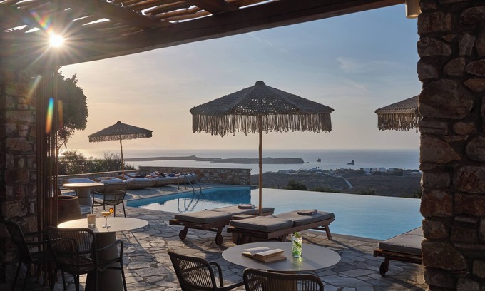 Best-rates for the Mythic Paros starts from $266 per night with includes Air Conditioner, Parking, Designated Smoking Area, TV, View, Business Services, Bar, Guest Services, Ocean View, Accessibility, Breakfast, Wellness Facilities, Spa, Balcony/Terrace, Bedding/Linens, Toiletries, Entertainment, Internet, Kitchen, Pool, Restaurant, Laundry with all other amenities. Perfect for Weddings is committed to ensuring every guest experiences a comfortable and extraordinary stay, whether planning a romantic getaway, a honeymoon, a pet-friendly stay, or celebrating with the entire wedding party.