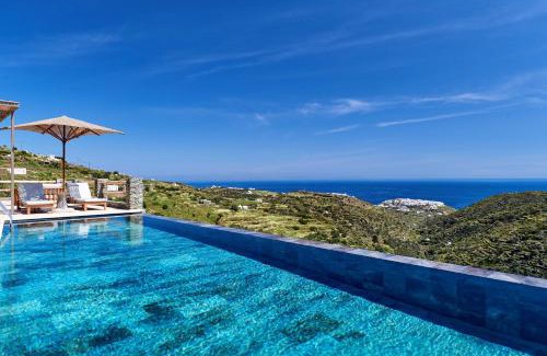 Mythic Villa features beauty services and air-conditioned accommodations in Sifnos, 1.4 miles from Seralia Beach. This property offers access to a balcony and free private parking. Guests can make use of the seasonal outdoor pool or the barbecue, or enjoy views of the mountain and pool. The villa provides guests with a terrace, sea views, a seating area, satellite flat-screen TV, a fully equipped kitchen with a dishwasher and an oven, and a private bathroom with walk-in shower and bathrobes. A microwave, a toaster, and fridge are also offered, as well as a coffee machine and a kettle. At the villa complex, units include bed linen and towels. À la carte and continental breakfast options with local specialities, fresh pastries, and fruit are available. Yoga classes and fitness classes are arranged at the fitness room in house. If you'd like to discover the area, cycling and walking tours are possible in the surrounding area, and Mythic Villa can arrange a bicycle rental service. Chrisopigi Monastery is 4.9 miles from the accommodation. Milos Island National Airport is 33 miles from the property.