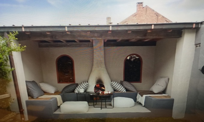 In the evenings and on cold winter nights, you can gather around the fireplace in the outdoor living room. Wood and chips are provided.