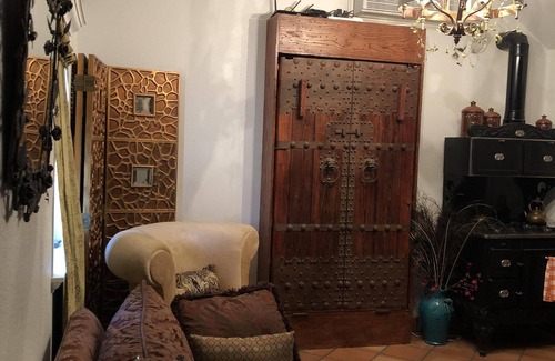 This booking is for the main cottage which is upscale and comfortable. It includes a kitchenette, and charmingly rustic bathroom and galvanized steel shower. The main cottage also contains the loft (entered via a ladder) so please tell us if you prefer not to sleep in the loft we must know ahead of time so so we can make up a beautifully adorned ground floor bed. This is a bit of production, so once again, we need to know ahead of time. Also, to keep costs down for single travelers, the listed price is for the first person. Each additional person is charged a fee. To prevent additional charges upon arrival, please put the accurate number of people in the reservation.