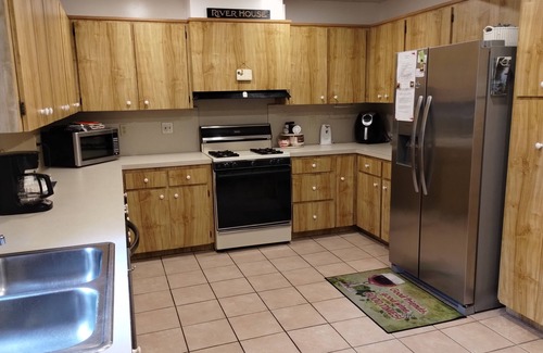 Rental consists of downstairs unit containing; 2 separate bedrooms, two separate bathrooms, two separate living rooms and a massive kitchen and outdoor entertaining space. Laundry room and deck on waterfront included. 1900 square foot, that sleeps 8 nestled on an acre of property. Perfect location between headsprings and kp hole for tubing, kayaking, fishing or peace of mind. ( owners on premises but we realize that it is your time and space when you rent, any questions please ask) You have your own private waterfront. Have fun and get some sun! 🌞