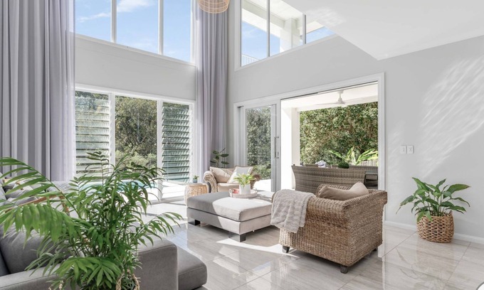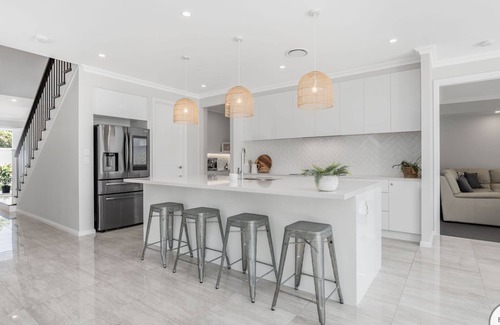 Perfecting lifestyle and beach vibes, this brand new home is a vast and light filled with 4 living spaces (3 smart TVS) so everyone has their own spot to unwind after a day at the beach.