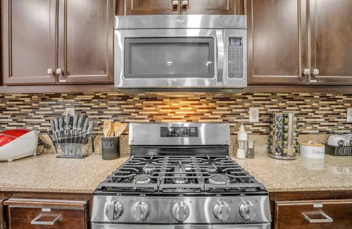 Step into this luxurious retreat and immerse yourself in all it has to offer. Cook a meal in the fully stocked rustic style chef's kitchen, gather for a cozy movie night by the fireplace, or challenge friends to a game of pool in the vibrant game room. Need to relax? Soak in the private hot tub or sip a drink by the outdoor fire pit while enjoying the evening sky.