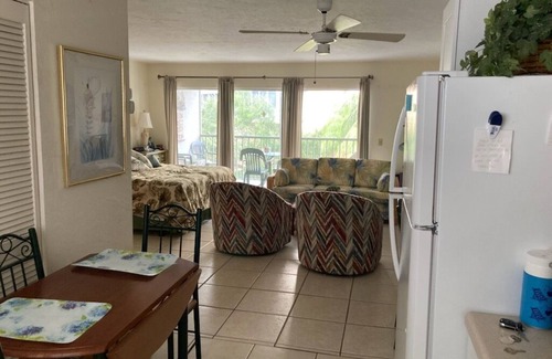 Enjoy the Florida Gulf Coast at very reasonable rates. This studio condo on the Bay is only one block from Naples best beach , Vanderbilt Beach, at the Ritz Carlton Hotel on the Gulf. Enjoy beachside dining at the Ritz Cafes. Swimming, boating, and fishing just steps from your door/ Walking distance or short drive to first class restaurants, luxury shopping, movies, parks, tennis, library, charter fishing and cruises. The condo has beautiful views of Back Bay and world class Ritz Carlton on the Gulf of Mexico. Located in a small, quiet, low rise building with protected parking beneath. Take the elevator or stairs to this 2nd floor residence.