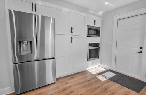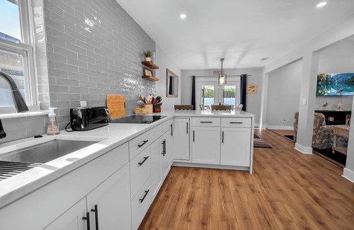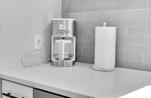 Inside, enjoy free Wi-Fi, smart TV, books and board games, central air conditioning, in-unit washer/dryer, and keyless entry. The kitchen is fully stocked with modern appliances—electric stove/oven, microwave, dishwasher, coffee maker, blender, air fryer, and ice maker—plus all essential cookware, utensils, barware, and basic spices. Linens, towels (including beach towels), starter toiletries, cleaning supplies, and in-home comforts like a hair dryer, iron, and vacuum are also provided.
