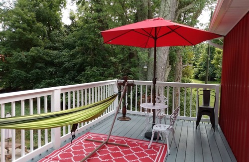 I bought this property bordering mine at sheriff sale and completely remodeled and newly furnished in 2019. We are on a peninsula at Buckeye Lake. Great area for walking and biking. We have chickens, guineas, lots of deer and varieties of birds. Hawks have fledged 3 young each of past 2 years. The large upstairs deck has a child gate at the top of the stairs.
