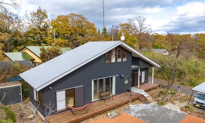 / This stylish jetblack modern house is located in a villa area in the heart of the Nasu Highlands It is a 6minute walk to the Teddy Bear Museum It is also a 10minute walk to Lake Rindou In the summer you can enjoy the fireworks at Lake Rindou from the second floor