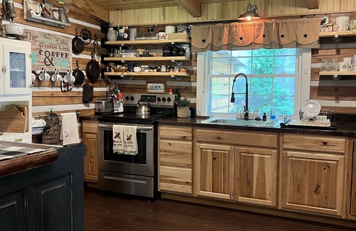 This 100+ year old authentic log cabin (relocated and renovated from Bellemeade, TN) sits quietly nestled in nature backing up to 1,200+ acres of woods.