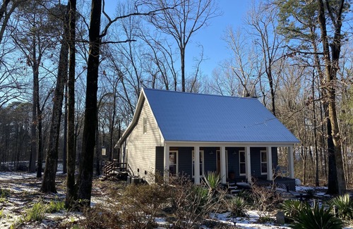 The Natchez Trace Cabin on 5 Acres - updated in Southern Living/Magnolia style decor and furnishings, very quiet and peaceful, private setting with long gated driveway that ensures privacy! Master bedroom downstairs and 2 bedrooms upstairs. Each Upstairs bedroom has a full size bunk bed, twin size upper bunk and twin size trundle bed (sleeps 4). 2 full baths. The sofa in the den is a queen size sleeper sofa! Front Porch, Screened Back Porch with large wraparound deck overlooking a pond! Close to Natchez Trace Walking & Bike Trails, Upper Reservoir Marina, and Turcotte Sporting Clays & Skeet Facility! The perfect getaway for a couple or family!