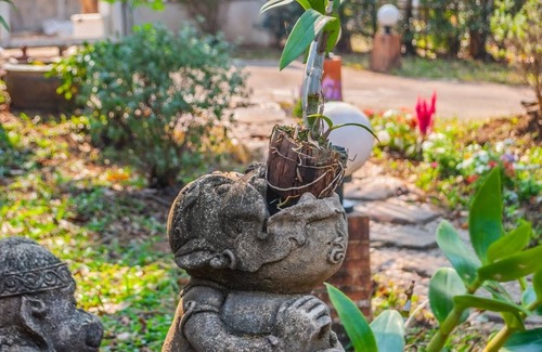 The house features traditional lanna style with strong accented wood finishing, 4 bedrooms and a spacious living room. You will be sure to relax away in the lushful and green garden filled with orchids, trees, fish pond, waterfall and flowers. Experience the true Chiang Rai culture, amongst a hidden neighborhood overlooking the tea fields of Singh Park and rice paddy fields.