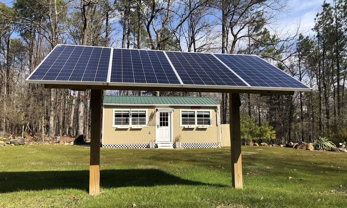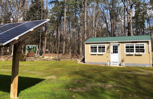 Convenient Chapel Hill, Jordan Lake. Cabin provides perfect OFF the GRID experience. Heat and AC, Mini Fridge, Microwave, Coffee Pot, TV etc. All powered by the sun only! Water tot is filled with well water for cooking/showering. Water cooler for drinking. Learn about living off the grid, how to save energy, connect with nature, relax away from busy life. Park-like area for picnic. Five acres of land with own trails is exclusively for you to enjoy! Need to follow all instructions to manage energy. We need to give few minutes tour of the unit.
