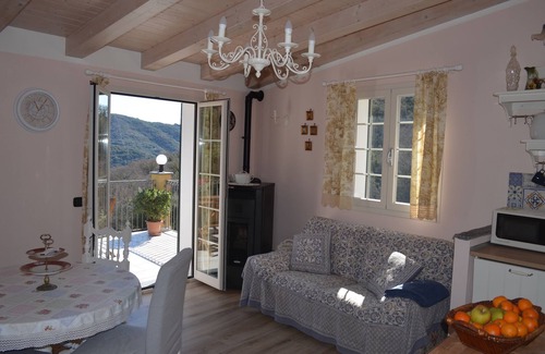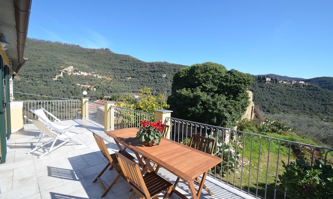Il Sorriso is an imposing stone house with a large terrace on the edge of the village of the small hamlet of Costiolo. Here the clocks go a little slower. From the large terrace that takes up the entire width of the house, you have a magnificent view over the olive groves across the entire valley. The 90 square meters of living space are very charming and homely quite freshly renovated. The Ligurian character of the house has been fully preserved and offers ample space for 4 people.
