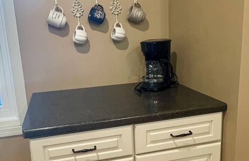The basement bedroom includes a game room stocked with board games, a ping pong table and an air hockey table in the basement's recreation room. Within the basement bedroom, there are two foldout couches as well as a sleeper sofa (not recommended for adults) for guests to enjoy while spending quality time together.