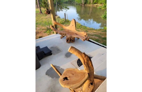 Enjoy tranquility at this unique getaway along waterway with Big Thicket National Preserve Park across from you. Be natural in nature with the one you love. Romantic setting on our beautiful 300 acre Ranch. Fish, grill, relax in hammock, soak in outdoor hot tub and listen to the sounds of nature that surround you. This precious tiny house can accommodate up to 4 adult guests if use Futon couch for sleeping. Full kitchen. Drive right to your tiny house and enjoy peace and quiet.