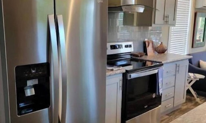 Precious one bedroom one bath tiny house located on the water. Lots of outdoor space to grill, relax, enjoy your hammock, fish right off your private dock.