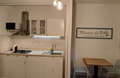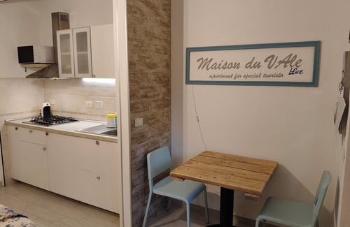 Maison du VAle blue is a new accommodation that joins Maison du VAle rouge active since 2012 (property n° 6601936 on Vrbo) which you can visit to check the reviews. The furnishings have been set up with care and love by the owners, equipped with all comforts, kitchen area, bedroom with double bed, bathroom with shower, Wi-Fi, TV, shared laundry area and private internal parking. The studio overlooks the garden with a private outdoor area with umbrella and sunbeds and a second area with table and chairs under the porch.