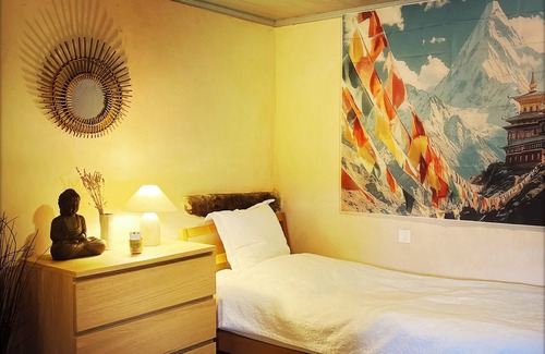 - Nature break in the monk's room, wellness area on site!