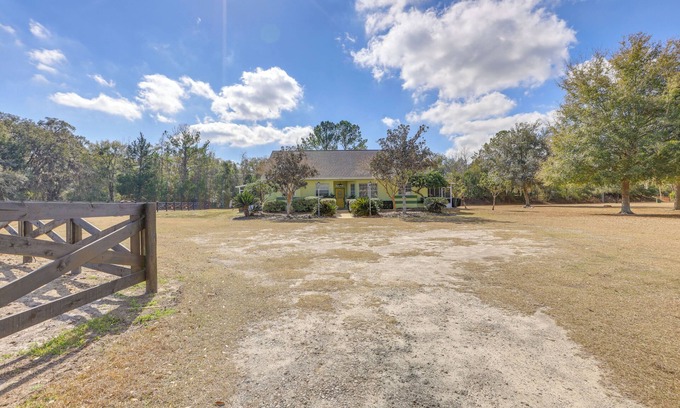 Get ready for a rural retreat on Florida's serene Nature Coast at this 4-bedroom, 4-bath 'Guest House' vacation rental in Williston. Wake each morning to the sound of roosters crowing, then enjoy a cup of coffee on the porch. When you're ready to explore, take the pups out to roam around the property's gardens or gather the kids for a day trip to Manatee Springs State Park. It's up to you!